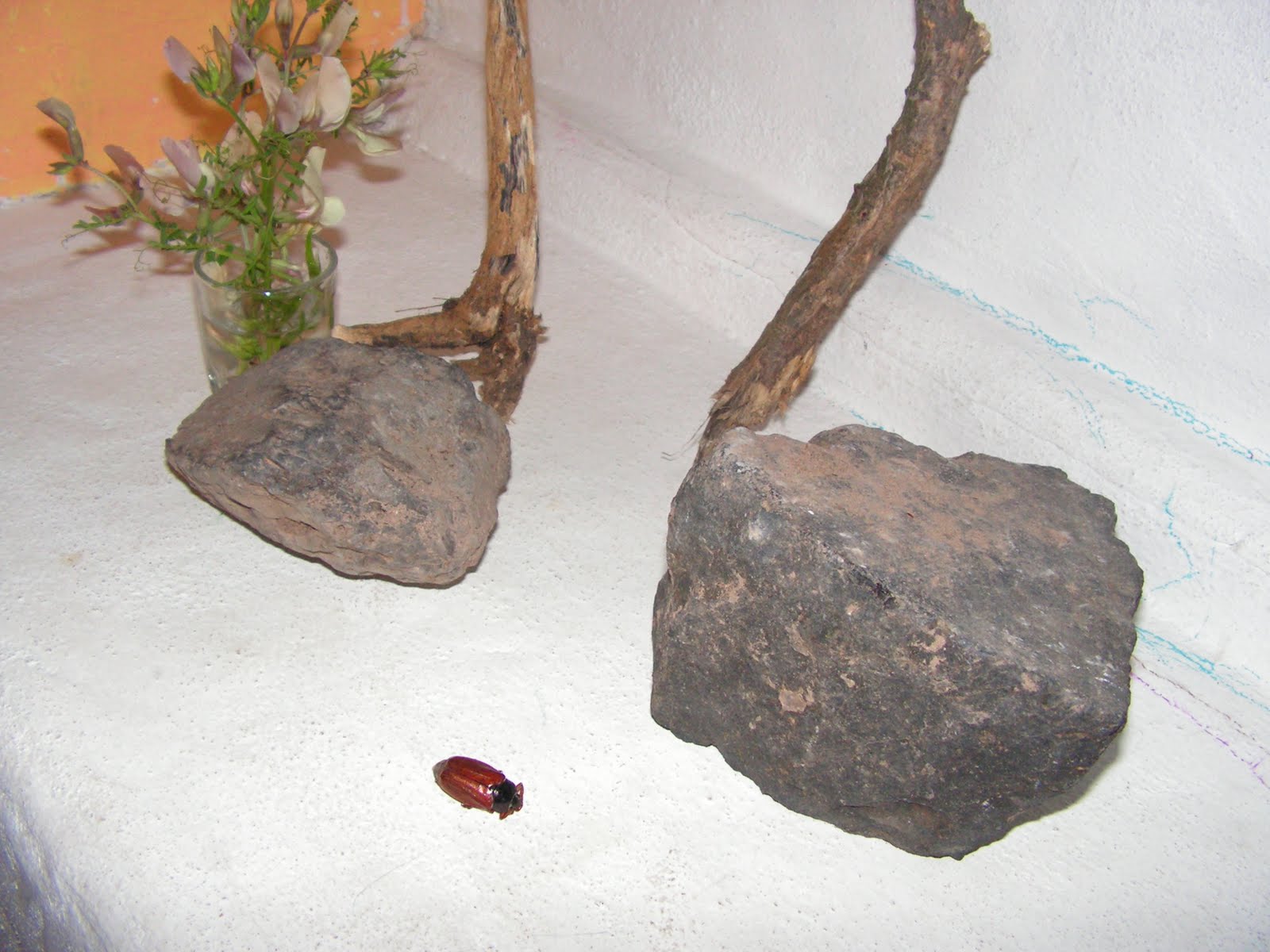 Anyák napjára szeretettel gyűjtve: (Két bot, két kő(de vulkanikus!), egy halott cserebogár(már a felfedezésekor is halott volt) és az elmaradhatatlan virág(szegletes lednek). Köszönöm Gyöngyöcskéim.